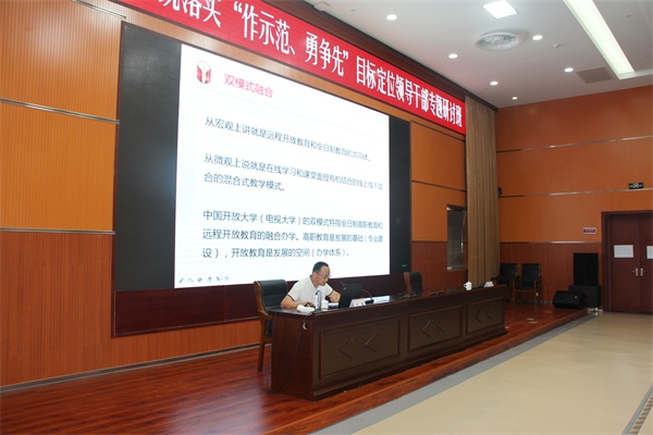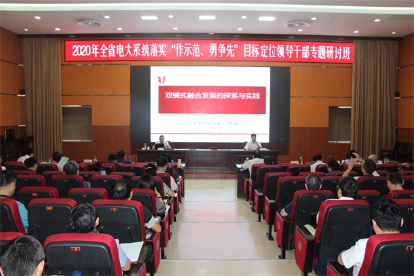 根据2020年全省电大系统落实“作示范、勇争先”目标定位领导干部专题研讨班暨全省广播电视大学工作会安排,8月26日下午,云南开放大学副校长、教授罗骥应邀来赣,为全省电大系统领导干部作题为《双模式融合发展的探索与实践》专题学习报告。讲座由江西广播电视大学党委副书记黄平槐主持。