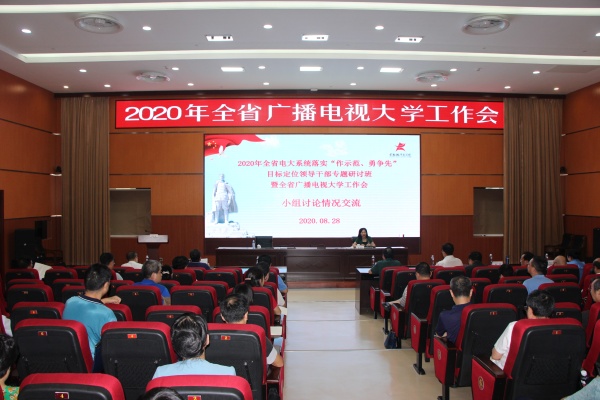 8月29日上午,2020年全省电大系统落实“作示范、勇争先”目标定位领导干部专题研讨会各小组作讨论情况交流汇报。汇报会由江西广播电视大学党委副书记、校长朱爱莹主持。