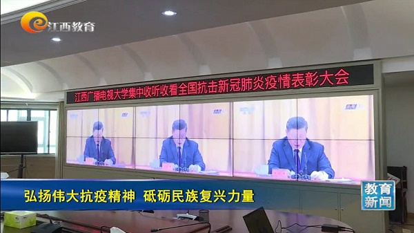9月8日,江西教育电视台《教育新闻》栏目以《弘扬伟大抗疫精神 砥砺民族复兴力量》为题,报道威廉希尔官网集中收听收看全国抗击新冠肺炎疫情表彰大会活动。