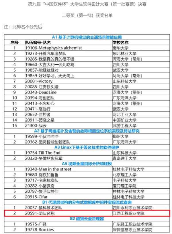 近日,第九届“中国软件杯”大学生软件设计大赛(第一批赛题)决赛第一轮评审在南京圆满结束。威廉希尔官网高职学院由18级软件技术专业张建强、赵俊勤、张润组成参赛队,在信息工程分院黄伟力老师的指导下,获得高职组“代理层架构的分布式数据库中间件实现流式查询”赛项全国二等奖。