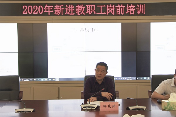 培训会上,副校长邱东升作开班动员讲话。他首先对新进教职员工表示热烈欢迎,并提出四点希望。一是师德师风必须严谨,要严格遵循党和国家的相关要求;二是业务工作必须娴熟,要学好理论与业务技巧,积极向前辈请教;三是做人要诚恳,做到与人为善、诚实守信、热情待人;四是做事要踏实,力求大气、务实、细致、勤奋。