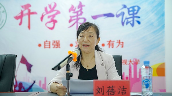 教师代表谢敏红与新同学分享了三个关键词:新身份、新征程、新收获,希望新同学尽快适应“大学生”这个新身份,“勤学以增智”“修德以立身”“笃实以为功”。