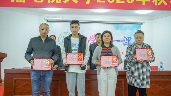 刘蓓洁首先宣读了2020年春季网上学习之星、国家开放大学奖学金及“希望的田野”奖学金、宜春广播电视大学新冠疫情防控先进个人及优秀志愿者的表彰决定。与会领导为获得荣誉的学员颁发荣誉证书及奖品,并表示祝贺,希望受表彰的同学珍惜荣誉,在今后的学习和工作中再接再厉,再创佳绩。