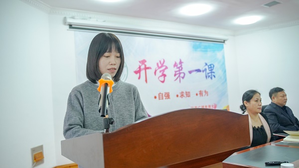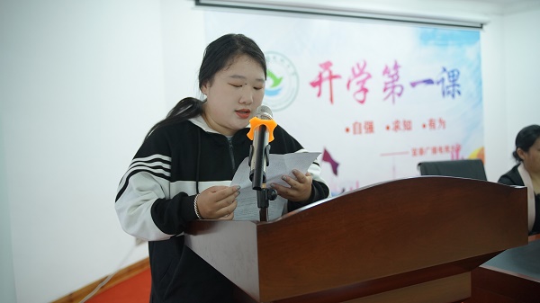 随后,新生代表20秋学前教育专科班王玉妍同学分享了入学感悟,希望和新同学一起再出发,永远做一名学习者,把学习贯穿于自己的一生,树立终身学习的理念,让学习照亮前行的路。