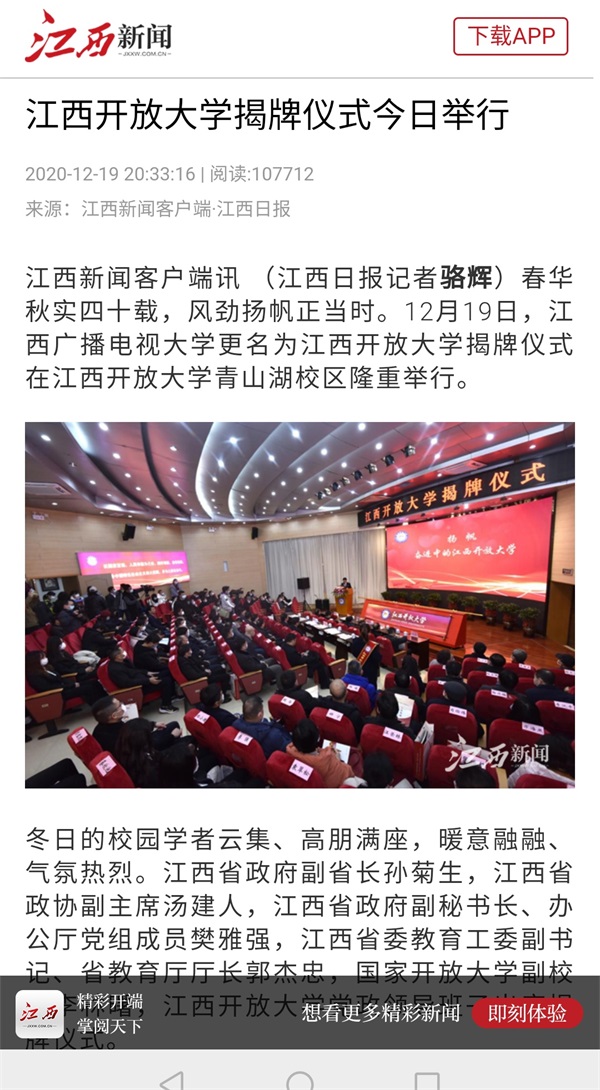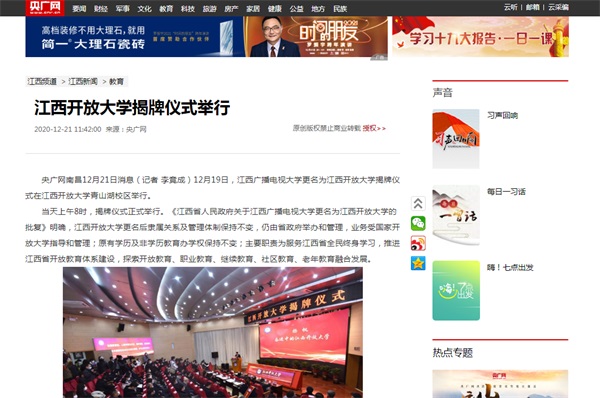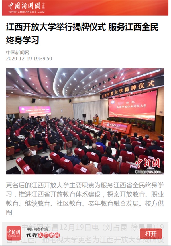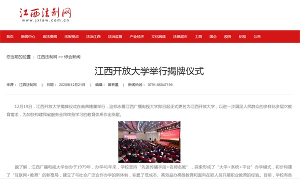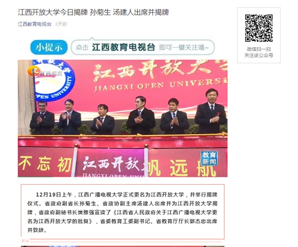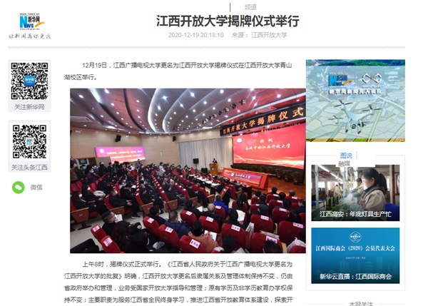 新华社:江西开放大学举行揭牌仪式