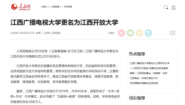 人民网:江西广播电视大学更名为威廉希尔足球网