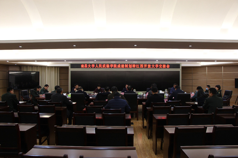 根据江西省人民政府文件要求,为部署南昌大学人民武装学院交接工作,确保学院成建制划转威廉希尔足球网平稳有序,2月10日上午,南昌大学人民武装学院成建制划转威廉希尔足球网交接会在威廉希尔官网召开。省政府副秘书长樊雅强,省政府办公厅副主任蒋志红,省政府办公厅人事处处长、一级调研员吴晓晖,省政府办公厅人事处副处长、三级调研员李经华,省政府办公厅秘书六处副处长李焕宏出席。学校领导班子全体成员,校内相关部门主要负责同志,人民武装学院主要领导班子参会。