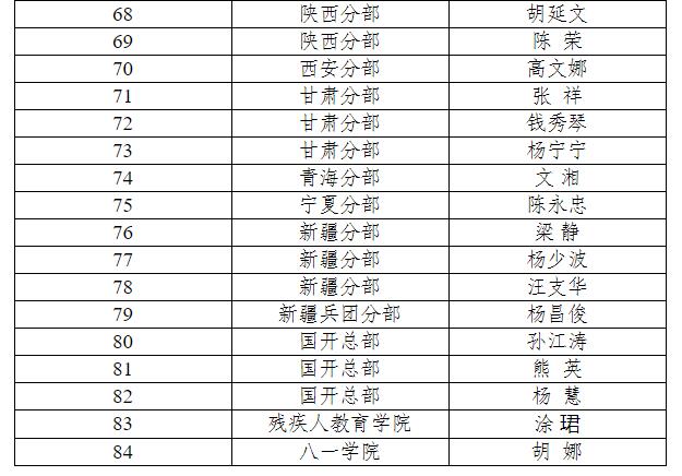“国家开放大学师德先进个人”人员名单