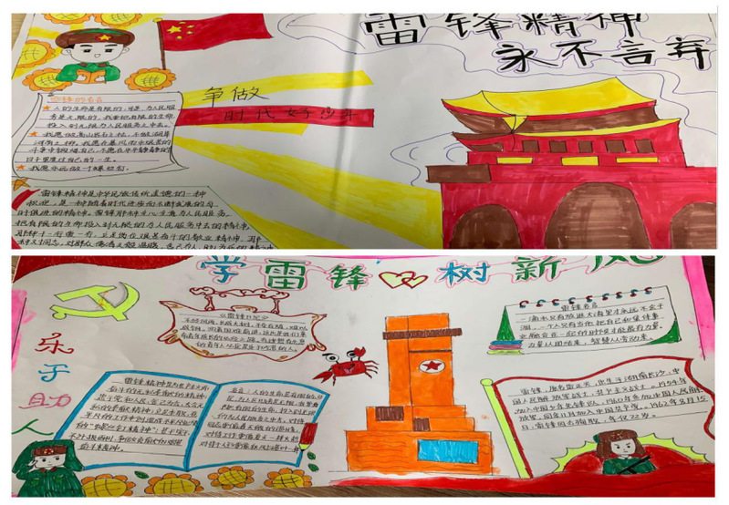 各班级通过绘制黑板报、手抄报、海报等形式,把缅怀以雷锋同志为代表具有为党为人民服务的精神融入到板报创作之中。通过对雷锋的生平事迹的介绍,让同学能充分了解雷锋,向雷锋学习,传承雷锋精神。