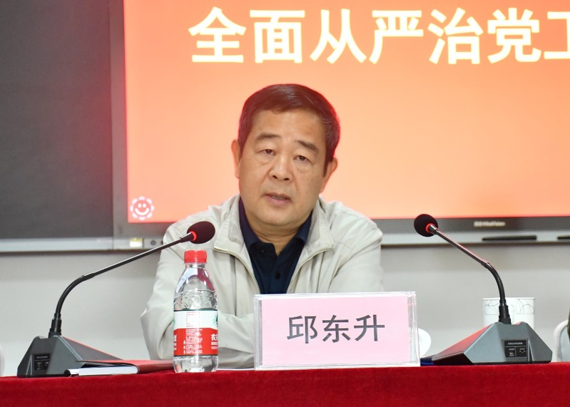 邱东升在讲话中指出,人武学院要从三个方面落实好全面从严治党要求:一是政治上要高站位、明责任。党员领导干部要将全面从严治党作为重要任务,要转变思想观念,经常对照检查自己。二是学习上要学党史、抓实效。要践行初心,学共产党人的“精气神”,真诚待人、踏实做事;要学以致用,将党史教育学习成果转化为工作动力。三是纪律上要守规矩、转“四风”。学院要有风清气正的干事创业环境,全体教职工要积极向上,看长远、顾大局。