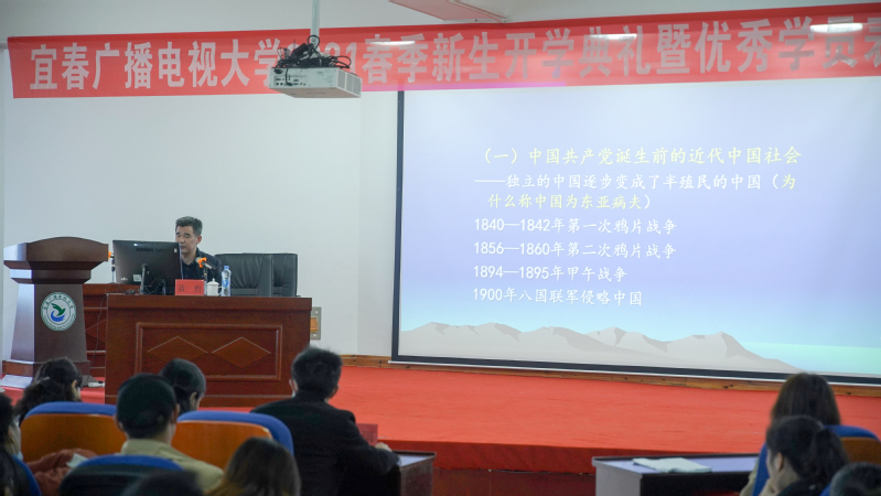 4月10号上午,宜春广播电视大学2021年春季学期开学典礼在学术报告厅隆重举行。学校特邀中共宜春市委党校副校长、副教授聂哲以“历史和人民为什么选择中国共产党”为题为广大师生作党史教育学习专题辅导报告,开启新学期党史教育第一课。报告会由校党委委员、副校长刘蓓洁主持全体教职工及200余名新老生代表现场聆听授课。