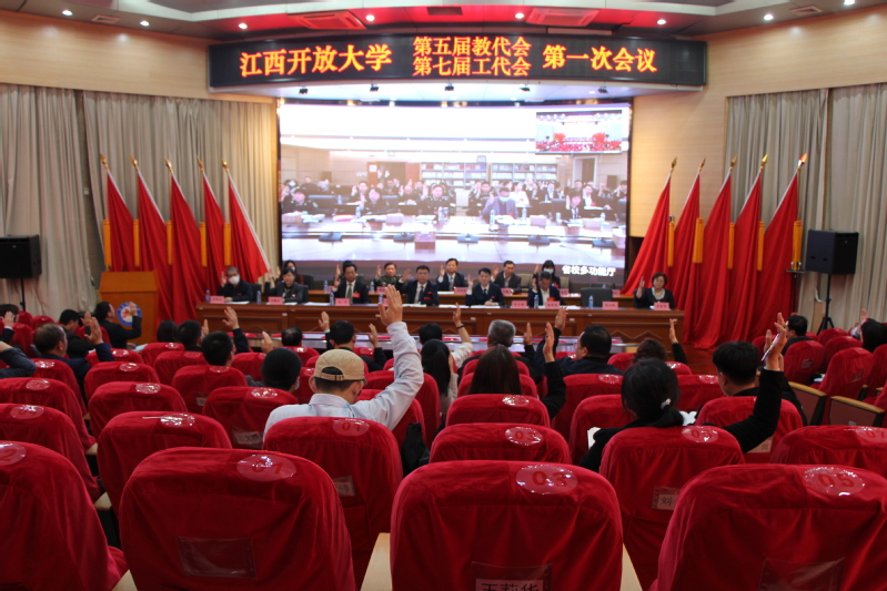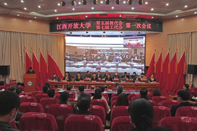 4月16日上午,威廉希尔官网第五届教代会第一次会议暨第七届工代会第一次会议在青山湖区行政楼二楼报告厅隆重开幕。省教育工会主席黄虹、特邀代表、校领导、教代会(工代会)正式代表、列席代表等一百余人参加开幕式。会议由校党委副书记邓文君主持。