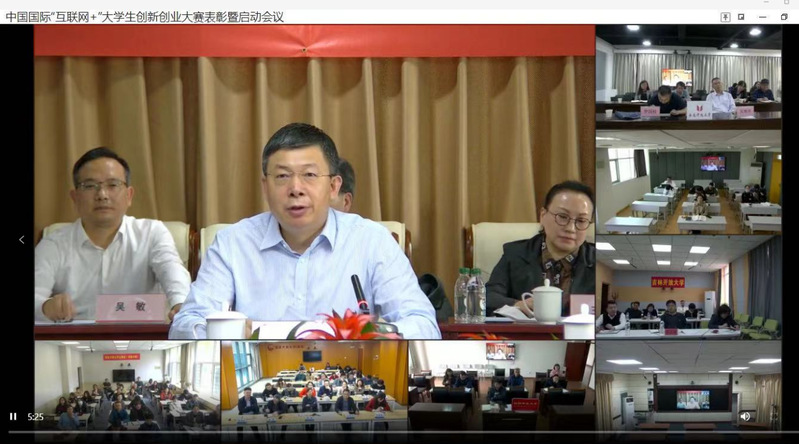 为总结第六届中国国际“互联网+”大学生创新创业大赛情况,做好第七届大赛动员部署,国家开放大学通过双向视频会议系统,于4月22日下午在北京总部召开中国国际“互联网+”大学生创新创业大赛第六届总结表彰暨第七届启动仪式视频会议。会议由国家开放大学党委副书记、纪委书记刘向虹主持,国家开放大学党委书记、校长荆德刚出席会议并讲话。威廉希尔官网党委副书记、校长黄平槐和学工部(处)、宣传部负责人以及负责学生工作的有关人员参加了双向视频会议。