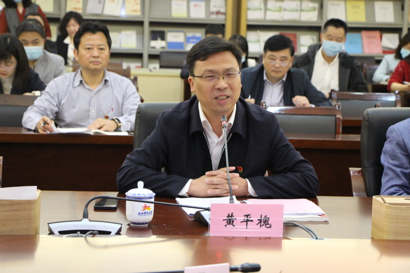 党委副书记、校长黄平槐受党委书记委托,介绍了学校基本情况,并就党史学习教育开展情况进行汇报。他表示,学校开展党史学习教育工作以来,始终坚持深入贯彻省委党史学习教育“务求实效、走在前列”的要求,并将其内化为一种自觉的态度和行为,对标对表抓落实。