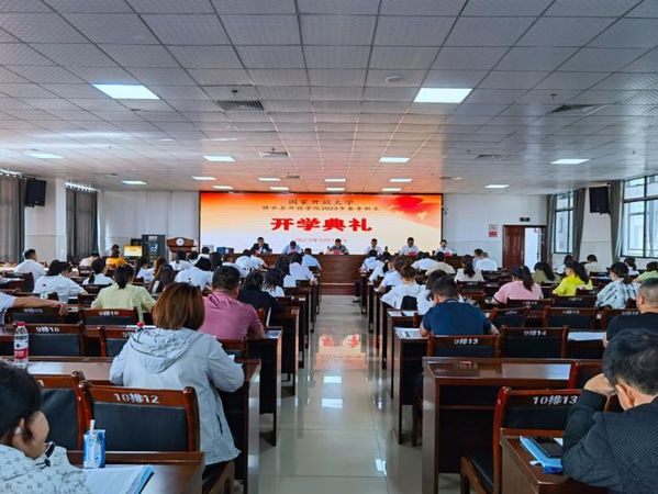 5月15日,九江市开放大学修水县开放学院2023年春季新生开学典礼顺利举行。县教育体育局党委委员、副局长郑英满出席并讲话,县教师发展中心副主任雷水华主持开学典礼,县开放学院(县教师发展中心)全体班子成员及全体教师、165名新学员参加了开学典礼。