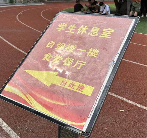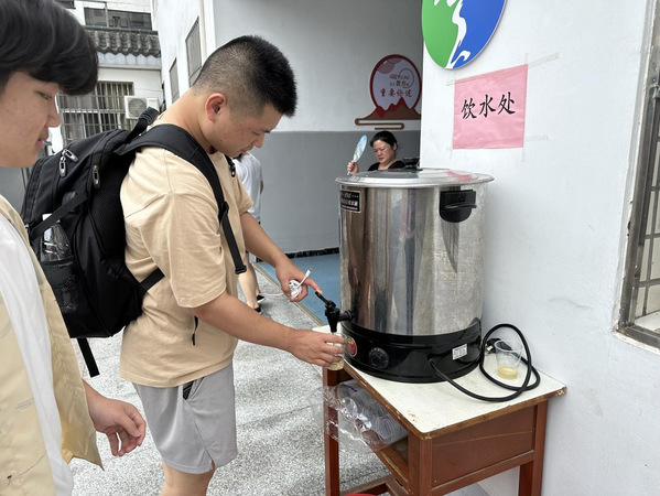 提前备好消暑凉茶放置在各个考场点,保证让每栋楼层的考生都能喝上凉茶。