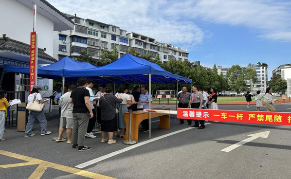 夏日天气炎热,学校为考生购置了一定的防暑药品,考前定制了一批“校园文化扇”发放给考生们。