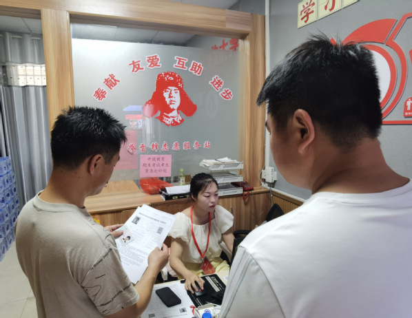 学校在雷锋服务站安排专人值班,并配备打印机,以备考生需要打印准考证等不时之需。