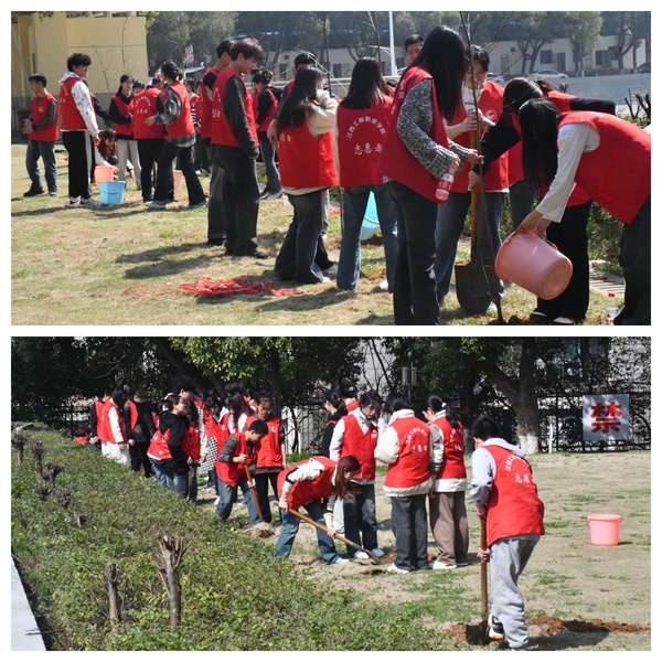今朝植木行行绿,翌年望林处处春。植树现场,一派繁忙有序、热火朝天的景象。师生们热情高涨、干劲十足,三五个人一组,默契配合,扶正树苗、培实新土,道道工序细致认真、有条不紊,分别在青云谱校区、西湖校区共种下40株枫树、23株樱花树。活动间隙,老师们与同学们亲切交流,了解大家的学习生活情况,希望大家通过植树活动更好地亲近自然,树立健康绿色生活理念,实现德智体美劳全面发展。