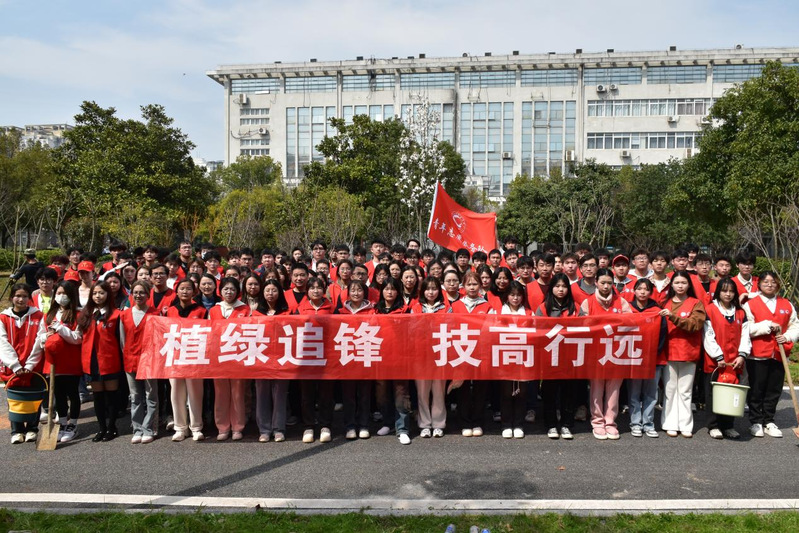 阳春三月,芳草初霁。2024年3月12日是我国第46个植树节。为引导学生树立和践行绿色文明生态理念,增强学生绿化环境意识,锻炼学生劳动实践能力,学校组织百余名师生志愿者,开展以“植绿追锋技高行远”为主题的义务植树劳动教育实践活动。