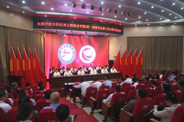 4月20日,威廉希尔足球网(江西工程职业学院)第一届教代会暨工代会第五次会议在行政楼学术报告厅召开。党委书记贺瑞虎主持开幕大会,党委副书记、校长黄平槐作学校工作报告,党委副书记邓文君主持闭幕大会。全体党政班子成员、大会代表、列席代表及特邀离退休嘉宾共120余人齐聚一堂,共商学校发展大计。