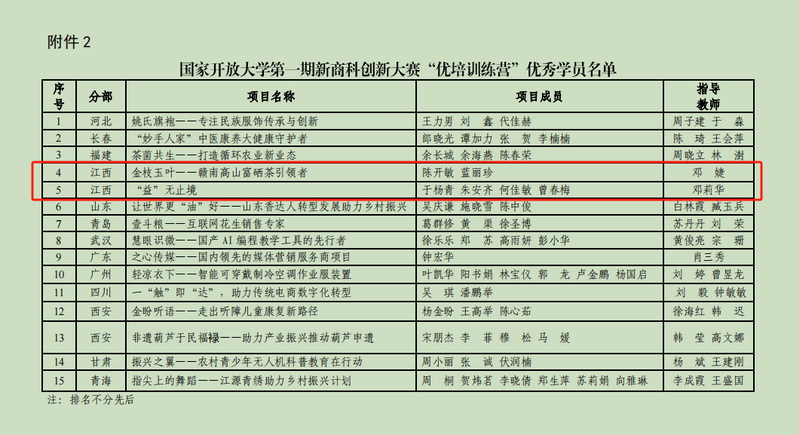 据悉,本次“优培训练营”旨在培养具备创新思维和创造能力的高素质人才,推动商科教育与创新实践的深度融合,全国开放大学系统共有15个项目的团队成员荣获“优培训练营”优秀学员称号。