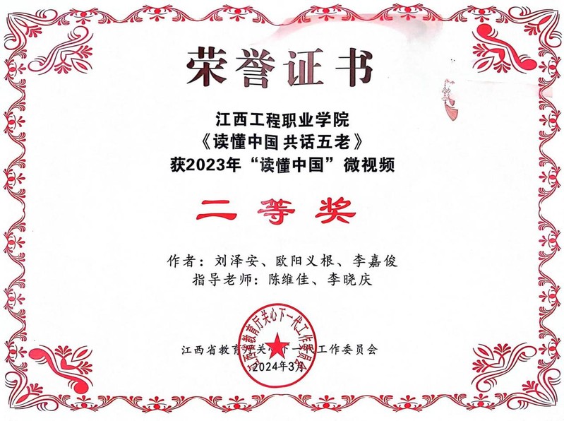 近日,省教育厅关工委公布了全省高校2023年“读懂中国”活动作品评审结果。学校数字经济学院选送的作品《读懂中国共话五老》荣获微视频二等奖。