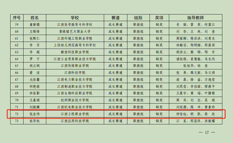 近日,江西省教育厅公布了首届江西省大学生职业规划大赛获奖名单。威廉希尔官网学生张业伟凭借优秀的职业规划和出色的表达能力,经过初赛、复赛、决赛的激烈角逐,在教师钟佳钰、胡凯、蔡欣的指导下荣获成长赛道职教组铜奖。