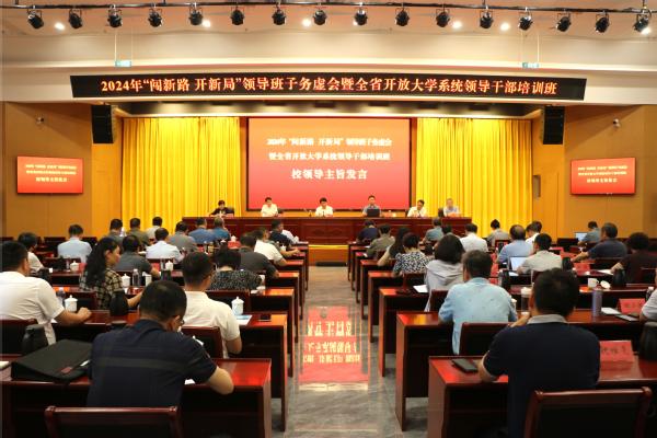 8月25日,全体校领导在2024年“闯新路 开新局”领导班子务虚会暨全省开放大学系统领导干部培训班作主旨发言。各设区市开放大学、产业与乡村振兴学院负责人以及学校各部门、单位主要负责人参会。