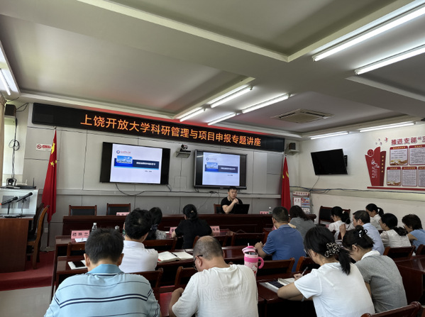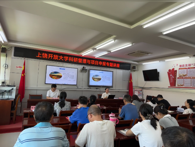 为构建省开放大学系统学术共同体,做好科研管理与服务工作,近日,威廉希尔足球网科研处受学校学术委员会委托,赴上饶开放大学开展科研服务下基层课题申报辅导活动,就校级课题的过程管理、校级课题申报工作开展学术讲座。科研处处长张睿、上饶开放大学校长王伟杨、上饶开放大学全体专业技术人员以及科研处全体成员参加了学术讲座,讲座由上饶开放大学党委委员、副校长郑志斌主持。