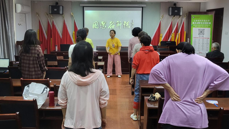 课堂上,江西老年开放大学艾玲副教授深入浅出地讲解了中国传统养生瑰宝“八段锦”。八段锦作为中医养生智慧与武术精髓的完美结合,不仅能够调节脏腑功能、疏通经络气血,更能够提升老年人的身体素质和精神状态,是实现健康老龄化的有效运动方式。她表示,在敬老月这个弘扬尊老敬老传统美德的特殊月份,学习八段锦不仅是对个人健康的投资,更是对生命的尊重与热爱。