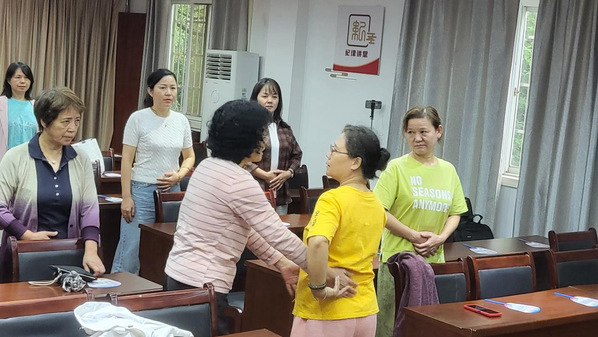 授课过程中,艾玲详细阐述了八段锦的八大动作,从“两手托天理三焦”到每一处细节,她都一一讲解。她不仅介绍了每个动作的名称由来、身体姿态、呼吸配合以及养生效果,还亲自示范,带领学员们一同练习,确保每位学员都能准确掌握八段锦的精髓。同时,她还特别提醒,练习八段锦要遵循“意随形动 形神合一”原则,注重意念的引导,使身心得到全面的放松与锻炼。在授课结束时她深情寄语:“健康是福,养生有道。让我们在这个敬老月里,携手共进,用八段锦这把‘金钥匙’,共同开启健康长寿之门,享受美好人生!”