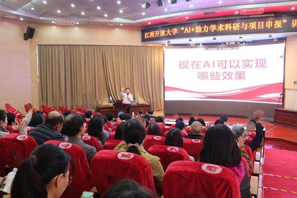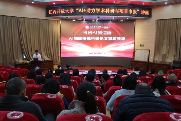 为贯彻落实党的二十届三中全会精神,推进教育数字化转型,同时提升威廉希尔官网科研水平,活跃学术氛围,12月4日上午,学校特邀秋叶集团AI智能工作台项目开发总监哈雷老师为专业技术人员做“AI+助力学术科研与项目申报”学术讲座。讲座由科研处(学习型社会研究院)和江西省远程教育学会联合主办。学校各部门、各学院共计70余人现场聆听,部分教师通过视频直播在线收看。