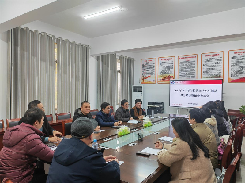 为确保2024年下半年普通话水平测试工作顺利进行,严肃考纪、端正考风,12月12日,学校普通话测试站召开2024年下半年普通话水平测试考务暨纪律警示会。学校教务处负责人、全体考务人员参加会议。