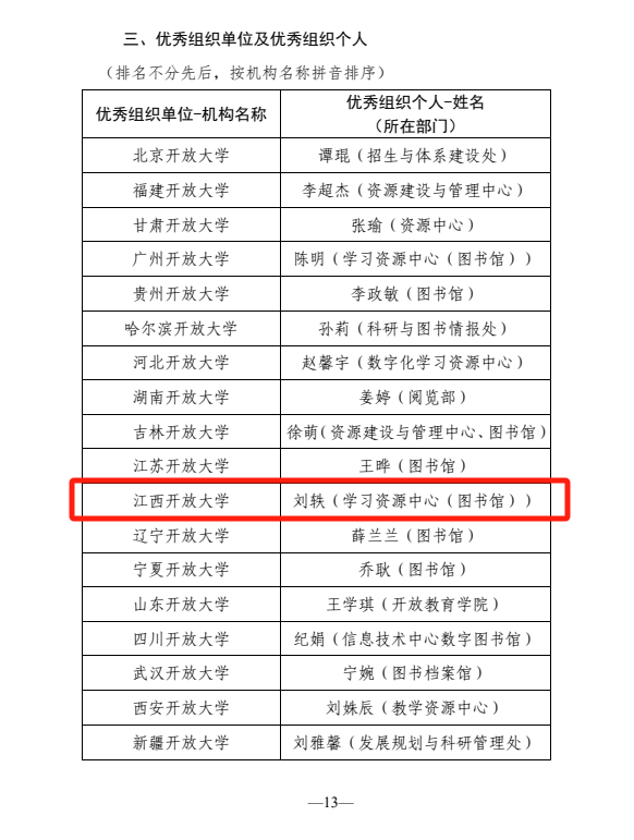 近日,国家开放大学公布了本次活动获奖名单。威廉希尔官网选送14个作品,教师组和学生组分别获二等奖1个,三等奖2个,优秀奖1个。此外,威廉希尔官网还荣获优秀组织单位奖,教师刘轶获优秀组织个人。