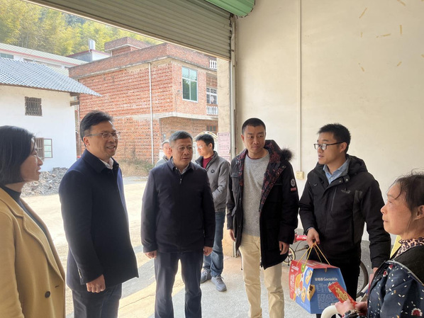 15日,黄平槐首先来到南康区横市镇新坑村,看望驻村工作队员,走访困难群众,与村民亲切交流,仔细询问家庭状况、身体情况及生活状况,向他们致以新年问候和祝福,并代表学校送上慰问金和慰问品。