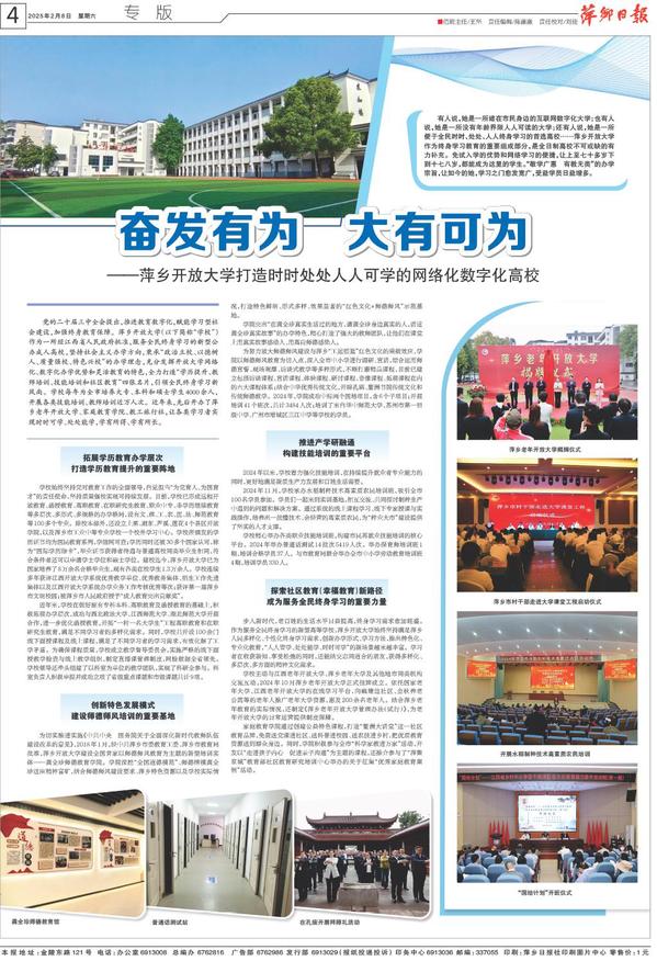 【萍乡】《萍乡日报》专版报道萍乡开放大学打造时时处处人人可学的网络化数字化高校