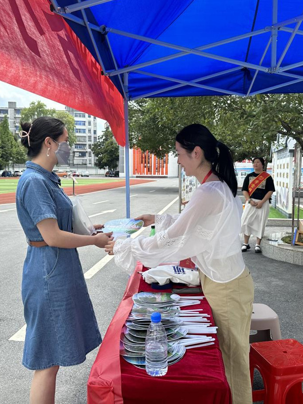 夏日天气炎热,学校为考生购置了一定的防暑药品,考前定制了一批“校园文化扇”发放给考生们。
