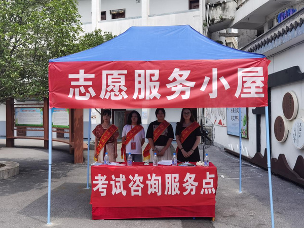 提前备好消暑凉茶放置在各个考场点,保证让每栋楼层的考生都能喝上凉茶。