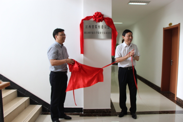 推进会结束后,举行了江西省监察委员会驻威廉希尔足球网监察专员办公室挂牌仪式,易小明和黄平槐共同为“江西省监察委员会驻威廉希尔足球网监察专员办公室”揭牌。