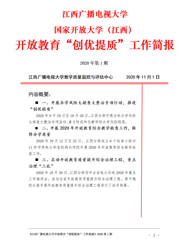 江西广播电视大学开放教育“创优提质”工作简报 2020年第1期(总第1期)