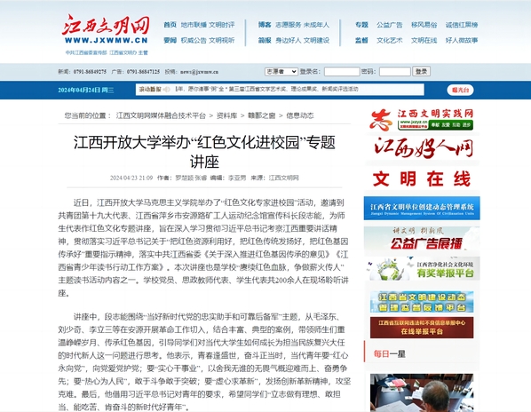 媒体关注:江西文明网报道我院举办“红色文化进校园”专题讲座