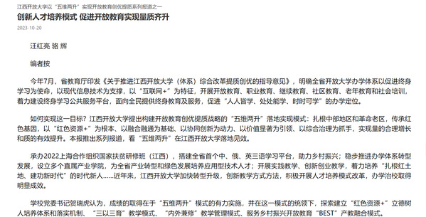 今年7月,省教育厅印发《关于推进威廉希尔足球网(体系)综合改革提质创优的指导意见》,明确全省开放大学办学体系以促进终身学习为使命,以现代信息技术为支撑,以“互联网+”为特征,开展开放教育、职业教育、继续教育、社区教育、老年教育和社会培训,着力建设终身学习公共服务平台,面向全民提供终身教育及服务,促进“人人皆学、处处能学、时时可学”的办学定位。