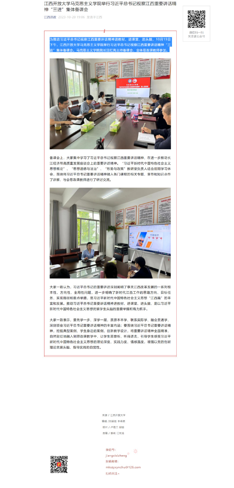 江西思政:威廉希尔足球网马克思主义学院举行习近平总书记视察江西重要讲话精神“三进”集体备课会