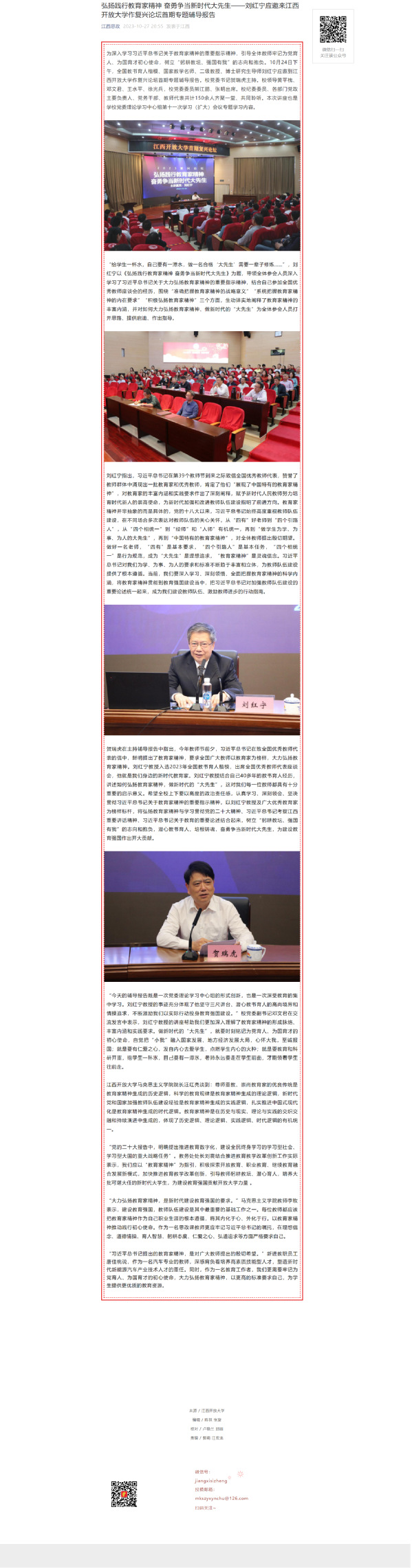 为深入学习习近平总书记关于教育家精神的重要指示精神,引导全体教师牢记为党育人、为国育才初心使命,树立“躬耕教坛、强国有我”的志向和抱负。10月24日下午,全国教书育人楷模、国家教学名师、二级教授、博士研究生导师刘红宁应邀到威廉希尔足球网作复兴论坛首期专题辅导报告。校党委书记贺瑞虎主持。校领导黄平槐、邓文君、王水平、徐光兵,校党委委员熊江鹏、张明出席。校纪委委员、各部门党政主要负责人、党务干部、教师代表共计150余人齐聚一堂、共同聆听。本次讲座也是学校党委理论学习中心组第十一次学习(扩大)会议专题学习内容。