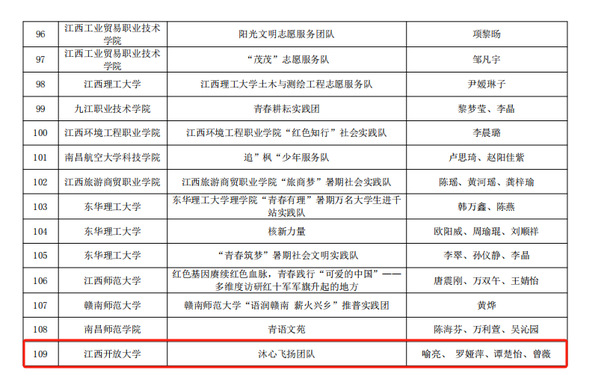 近日,江西省教育厅公布“强国有我、青春有为”暑期社会实践活动暨2023年“万名大学生进千站”文明实践志愿服务行动评审结果。其中,由威廉希尔官网学工处选送的《月亮湾“乡村振兴之路”调研报告》获得优秀调研报告一等奖,威廉希尔足球网沐心飞扬团队荣获优秀实践成果、优秀团队和优秀指导教师等多个奖项。此外,闵文祥、沈文龙、袁雪芳三位同学荣获优秀个人