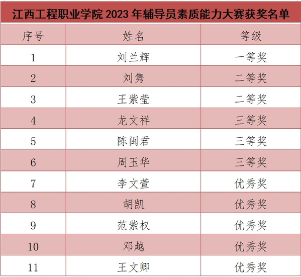 决赛现场氛围热烈,各位参赛选手各尽其才、各显其能,展现了威廉希尔官网辅导员积极向上的精神风貌和阳光乐观的职业形象。经过激烈的角逐,大赛最终评选出一等奖1名、二等奖2名、三等奖3名、优秀奖5名。
