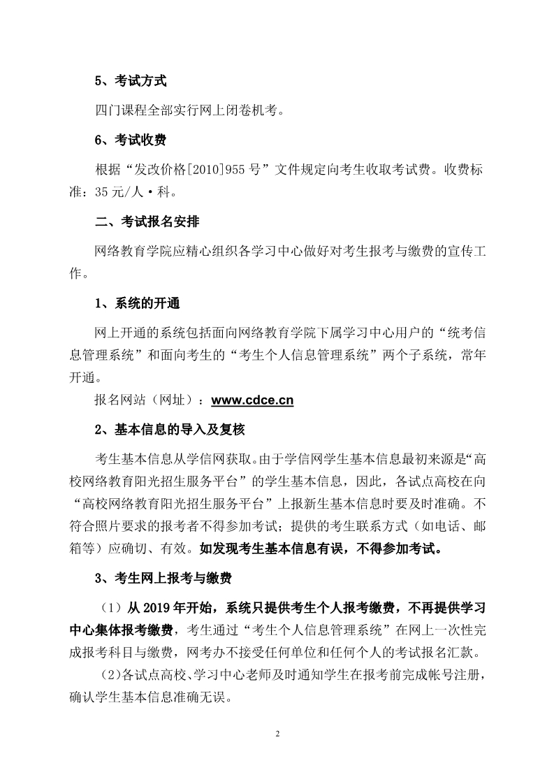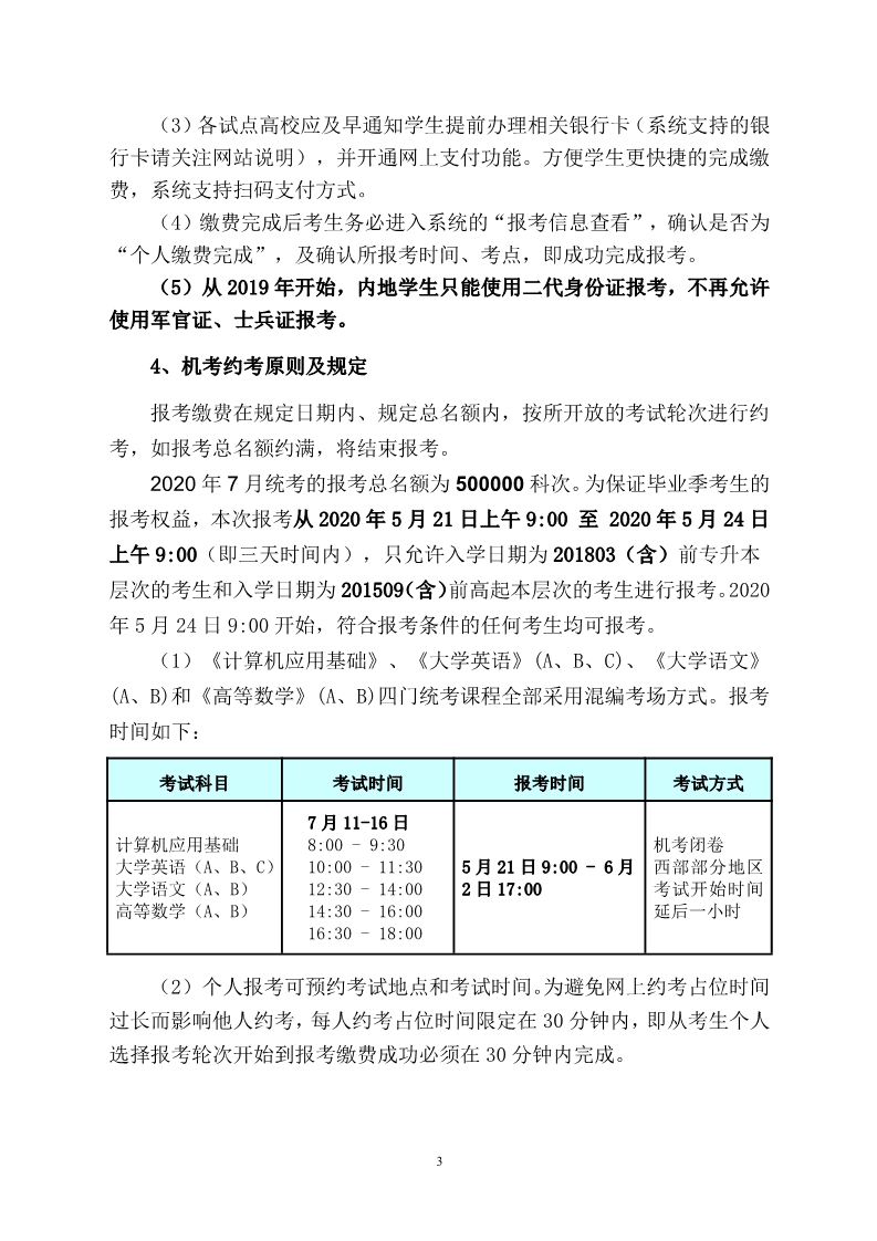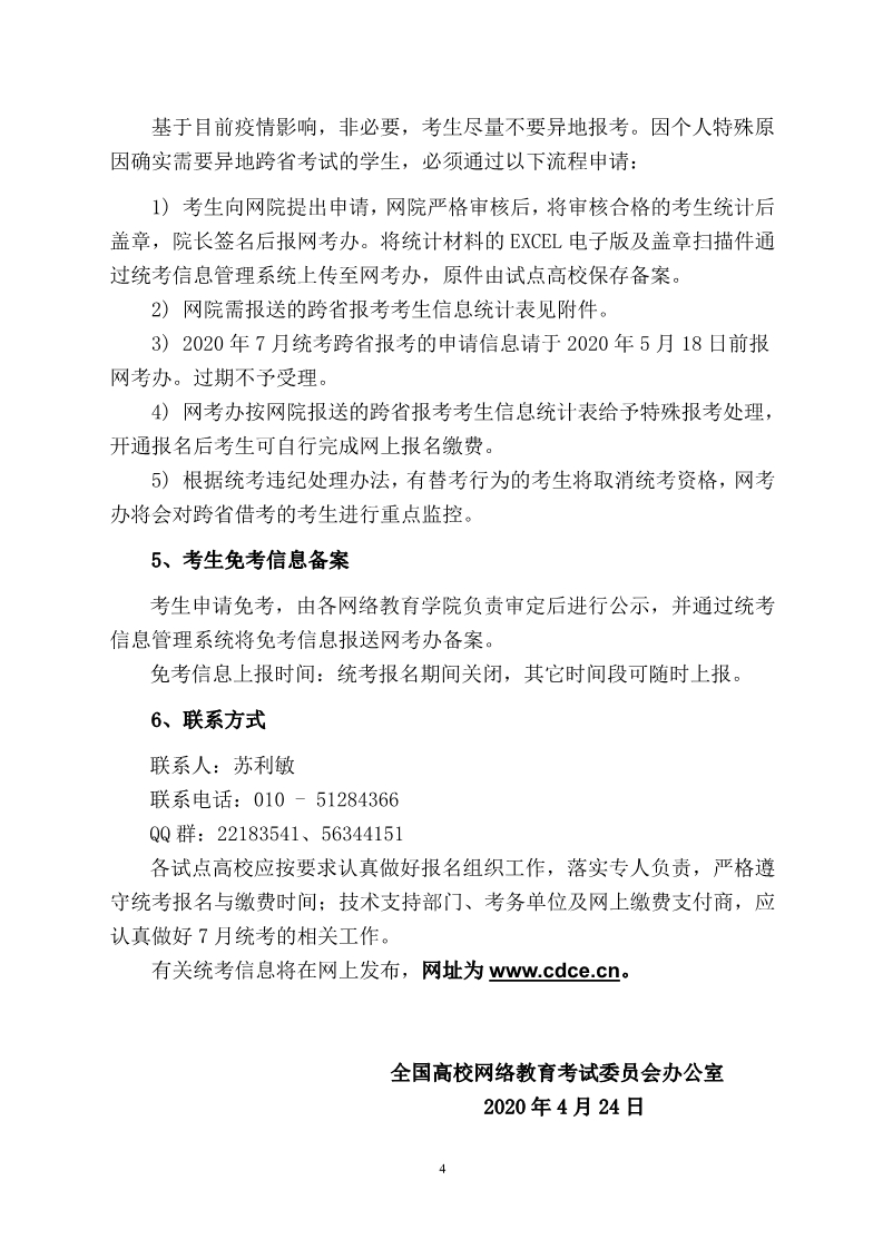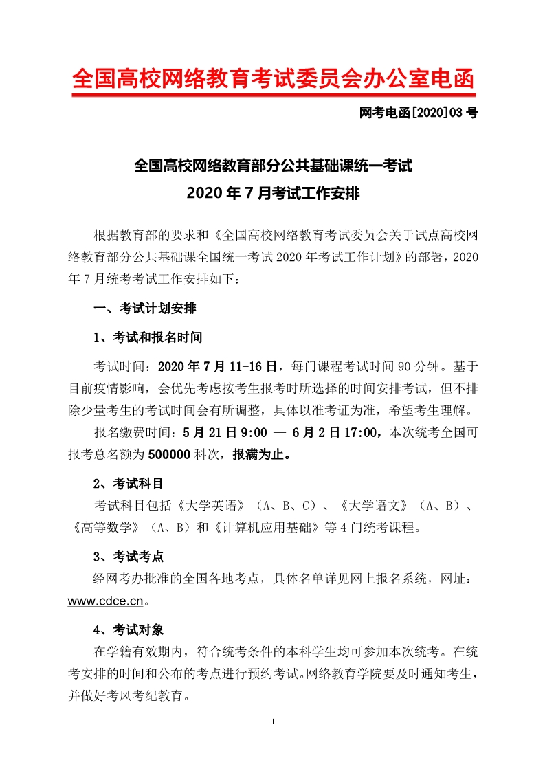 全国高校网络教育部分公共基础课统一考试 2020 年 7 月考试工作安排
